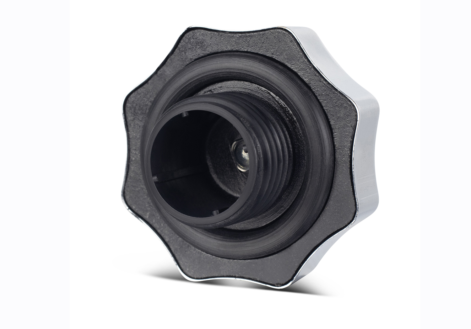 FORD OVAL LOGO OIL FILL CAP: SCREW IN TYPE; CHROME FINISH