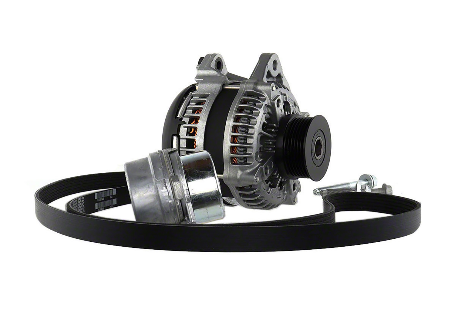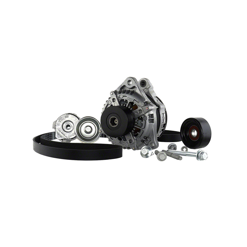 - Kit includes OEM high output Mustang GT alternator, tensioner, idler pulley, belt and mounting hardware
